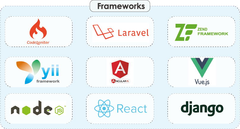 We use modern frameworks like Laravel, Vue.js, React, CodeIgniter, Node.js, Yii, Nodejs, django and Zend to build secure, scalable, and high-performing web applications tailored to your needs.